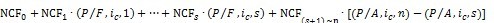 (4) 特殊方法四:当建设期不为零,全部投资在建设起点分次投入,投产后每年净现金流量为递延年金形式时,公式为: