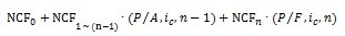 ②将运营期1~n年每年相等的不含回收额净现金流量按普通年金处理,第n年发生的回收额单独作为该年终值。公式如下: