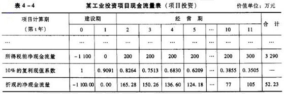 根据上述资料,用列表法计算该项目净现值如表4-4所示。