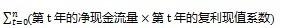 (2) 列表法。本法是指通过在现金流量表计算净现值指标的方法。即在现金流量表上,根据已知的各年净现金流量,分别乘以各年的复利现值系数,从而计算出各年折现的净现金流量,最后求出项目计算期内折现的净现金流量的代数和,就是所求的净现值指标。
