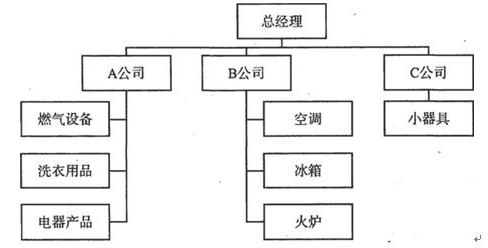 4.M型企业组织结构(多部门结构)。通过产品线的增加,.企业会不断扩张;随着企业规模的扩大,上述结构将不再适用。在这一阶段,具有多个产品线的企业应采用M型结构。M型结构将该企业划分成若干事业部,每一个事业部负责一个或多个产品线。下面来看A企业的例子。该器具企业的组织结构曾经非常简单,仅拥有三个产品事业部:燃气系列产品、洗衣系列产品以及电子系列产品。但是企业通过收购B公司(一家空调、冰箱和火炉生产商)和C公司(一家小型家电制造商),企业不断扩张产品线。如图5—4所示,M型结构包含了若干事业部,而每一个事业部都含有一个或多个产品线。