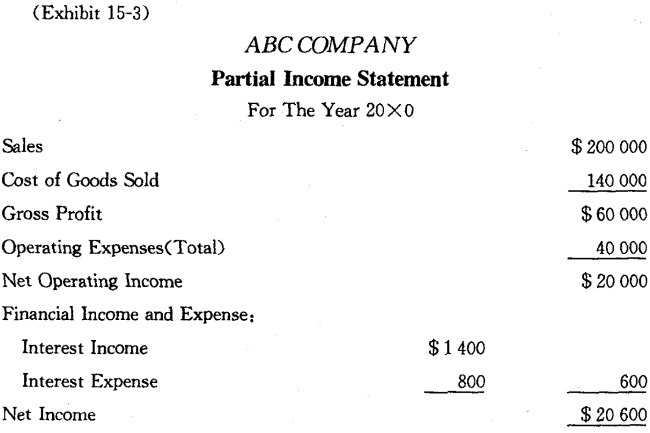 Because they are financial rather than operating items,we often separate Interest Expense and Interest Income from operating items in the income statement.As we see in the Exhibit 15-3, they frequently appear under the classification Financial Income and Expense. This type of presentation permits readers to make intercompany comparisons of operating results that are not influenced by financing patterns(理财方式) of the companies involved.